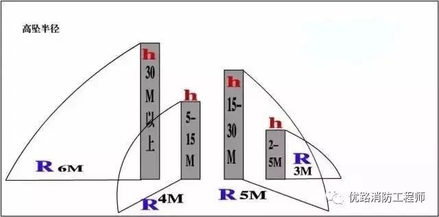 可能墜落范圍半徑的規(guī)定 R根據hi規(guī)定如下:a)當2m≤hb≤5m時,R為3m;b)當5m<hb≤15m時,R為4m;c)當15m<hb≤30m時,R為5m;d)hb>30m時,R為6m.《高處作業(yè)分級》GB/T3608-2008
