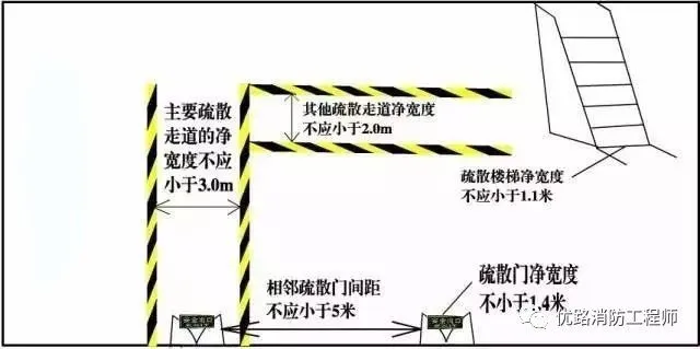 除本規(guī)范另有規(guī)定外,公共建筑內疏散門和安全出口的凈寬度不應小于0.9米,疏散走道和疏散樓梯的凈寬度不應小于1.1米。《建筑設計防火規(guī)范》(GB50016-2014)5.5.18