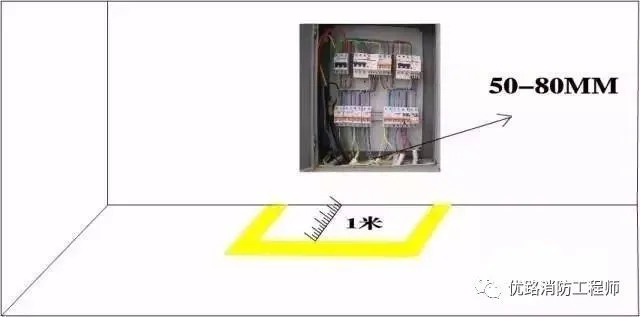 掛墻式配電箱的箱前操作通道寬度,不宜小于1m!兜蛪号潆娫O計規(guī)范》(GB50054-2011)4.2.5