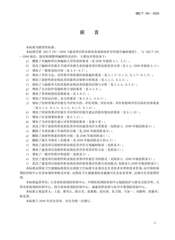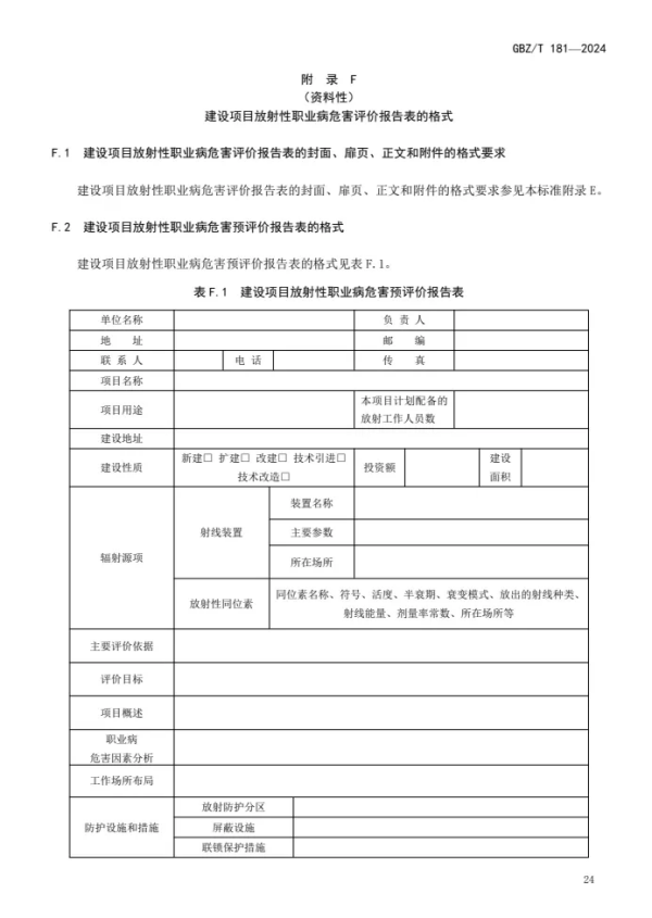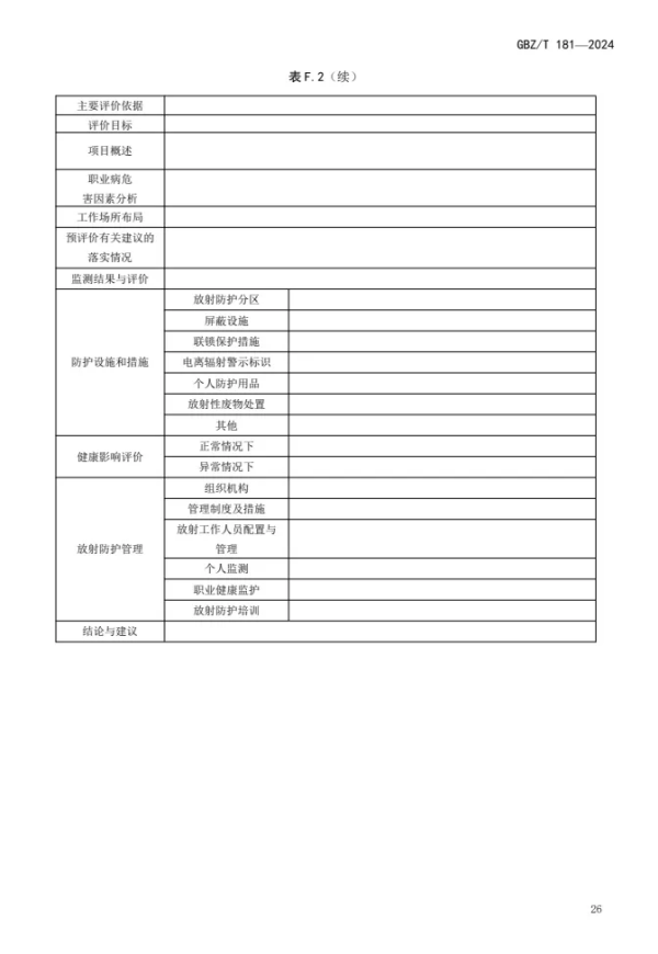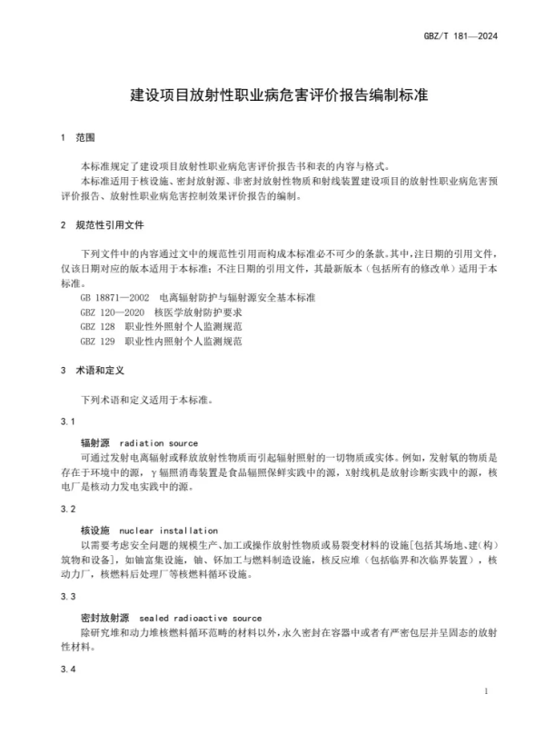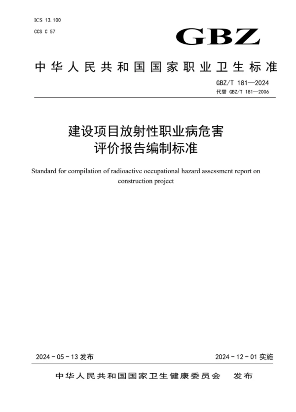 GBZ/T 181—2024 | 建設(shè)項(xiàng)目放射性職業(yè)病危害評(píng)價(jià)報(bào)告編制標(biāo)準(zhǔn)(代替GBZ/T 181—2006) |